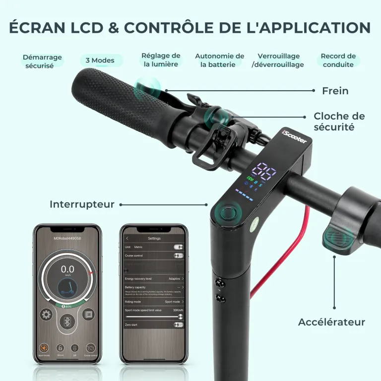 - El scooter eléctrico i9Max puede cambiar fácilmente entre velocidades. La aplicación móvil te permite explorar velocidades más rápidas.